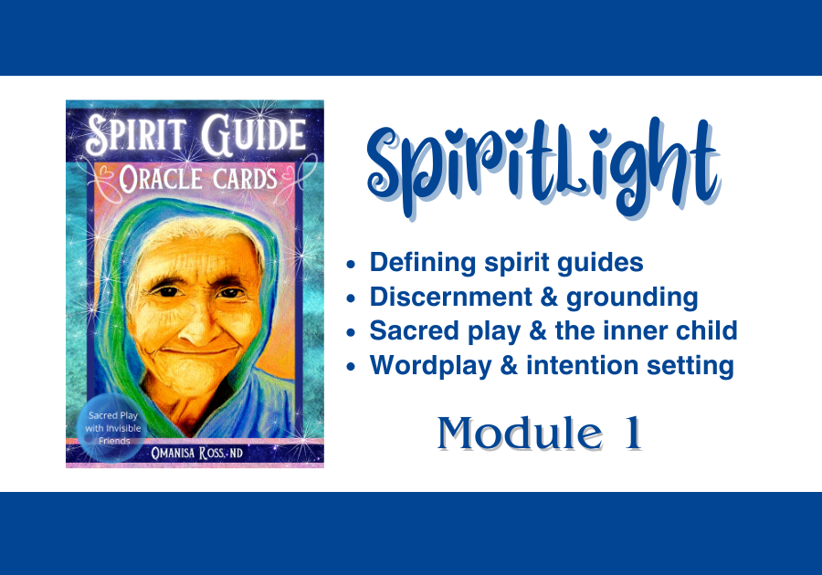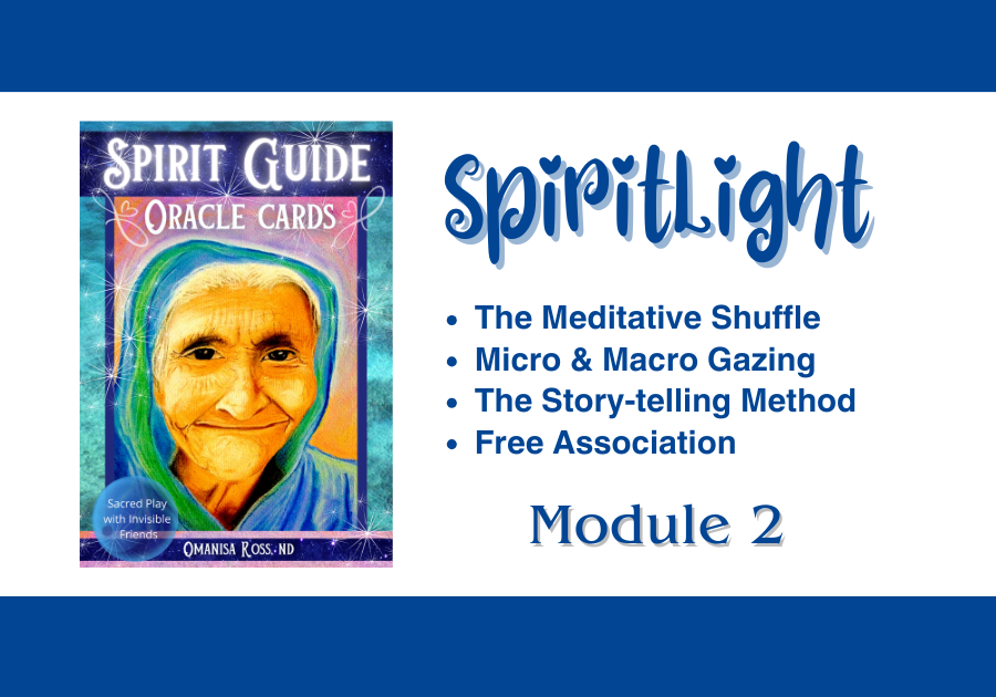 Om's SpiritLight course modules use Oracle Card play to help you develop and hone your psychic skills. Learn how to 'dream while you're awake' and more easily access the higher guidance of Spirit. Om will teach you how to set intent, craft succinct messages and apply this wisdom in grounded and inspiring ways to your day-to-day life.