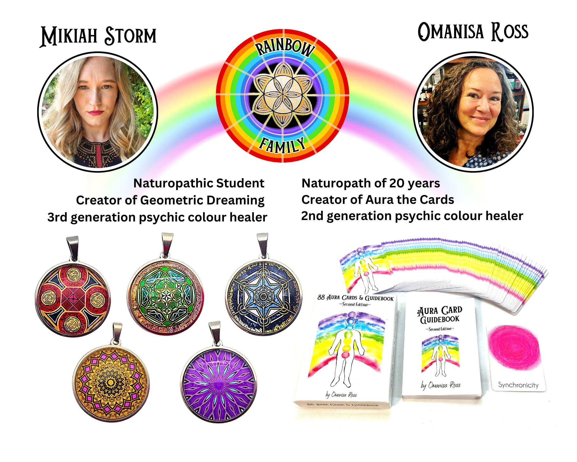 Mother and daughter team Omanisa Ross and Mikiah Storm come from a long line of artists and healers. They specialise in colour therapy, story-telling, visionary art, energy work and the creation of therapeutic spiritual resources that help people learn and grow through sacred play.