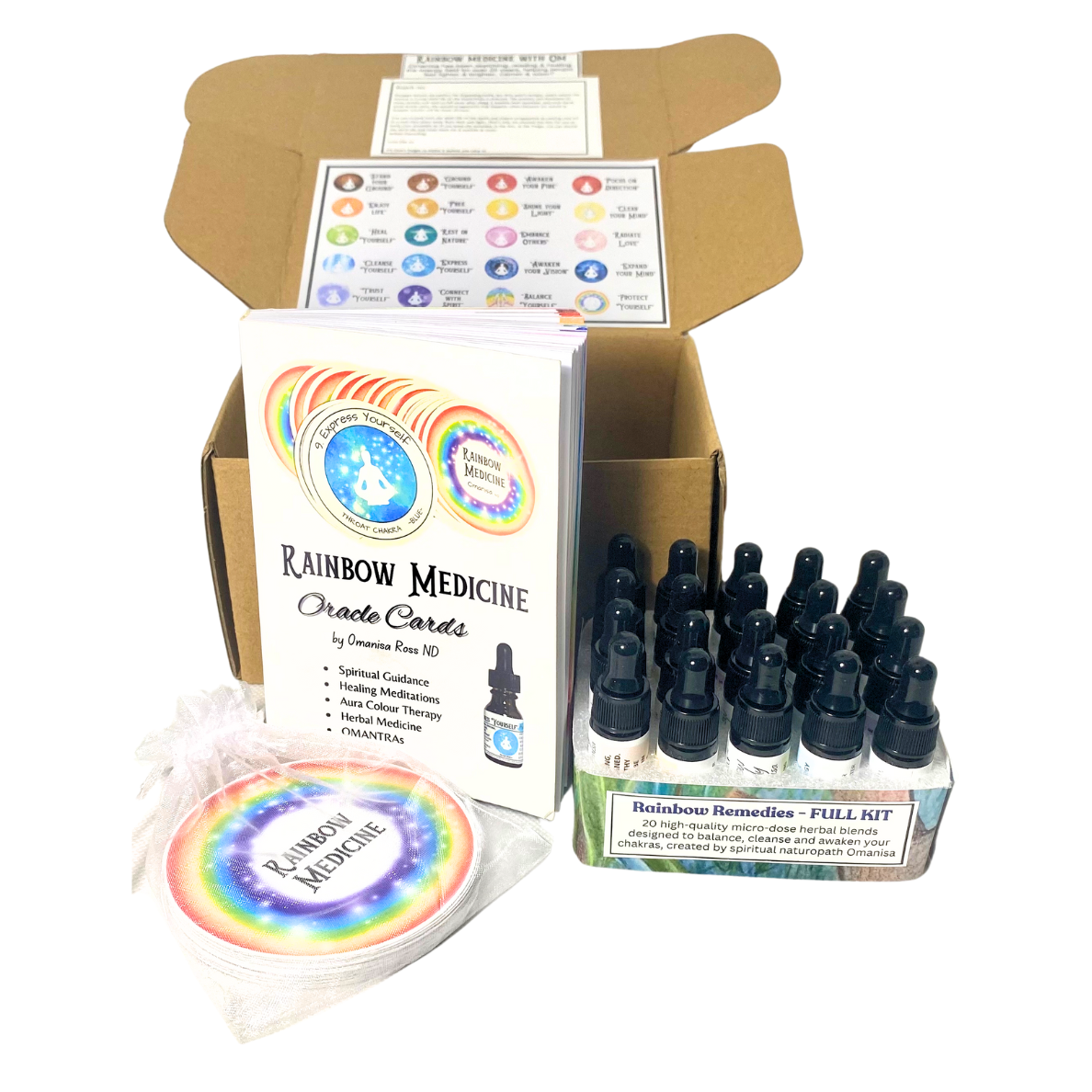 These are the small bottle included in the Rainbow Medicine complete kit, which features the Rainbow Medicine cards and book.